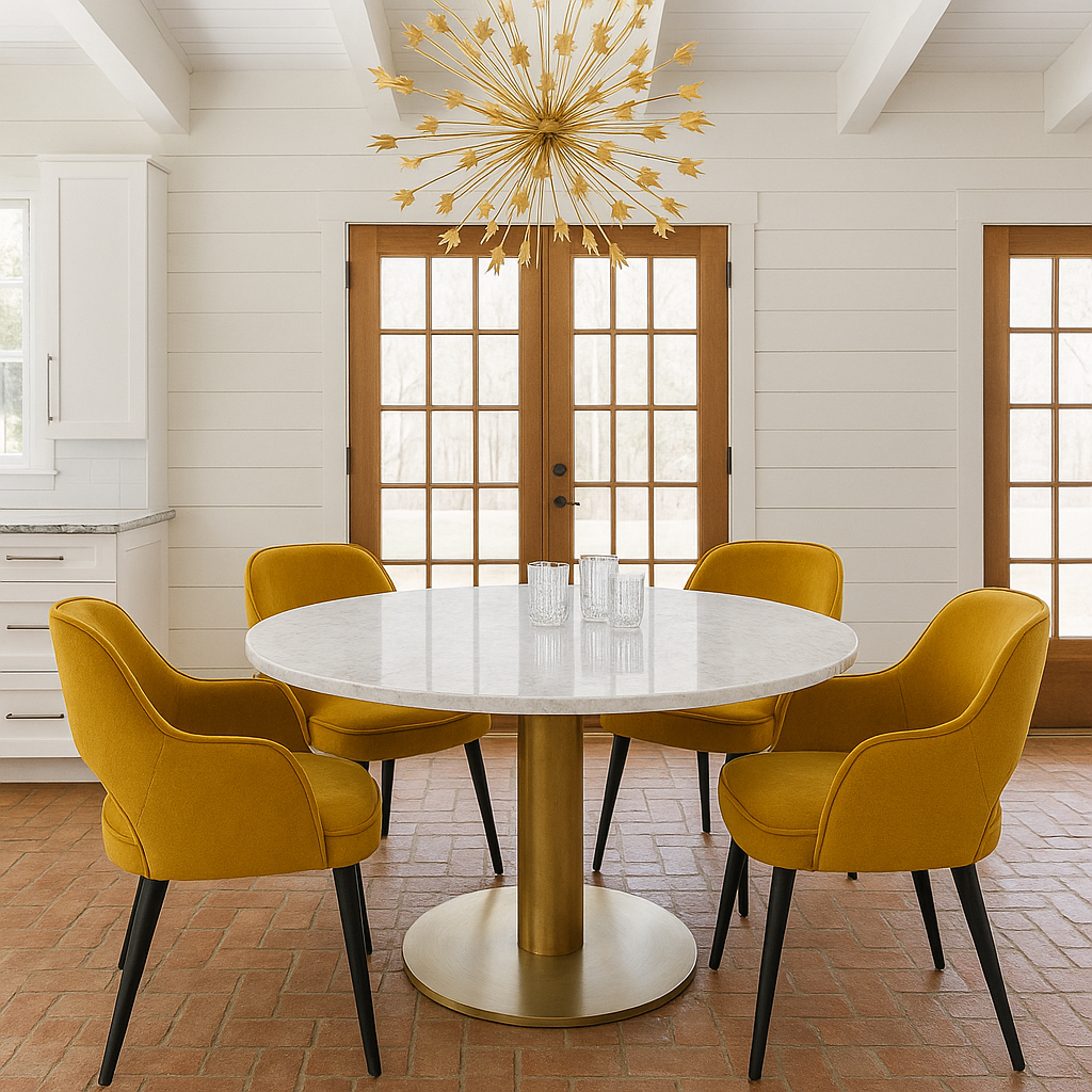 Runder Couchtisch aus Holz mit Marmorplatte – skulpturales Design – Ø 84 cm – modern & organisch